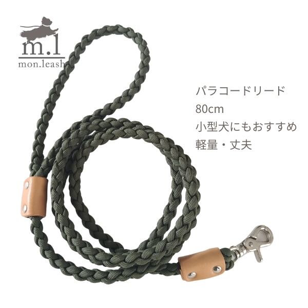 お散歩リード 80cm パラコード リード 犬 引き紐 / ベージュ革 ダークグリーン