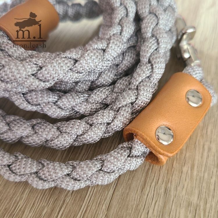 お散歩リード 100cm パラコード リード 犬 引き紐 / ベージュ革 シルバー