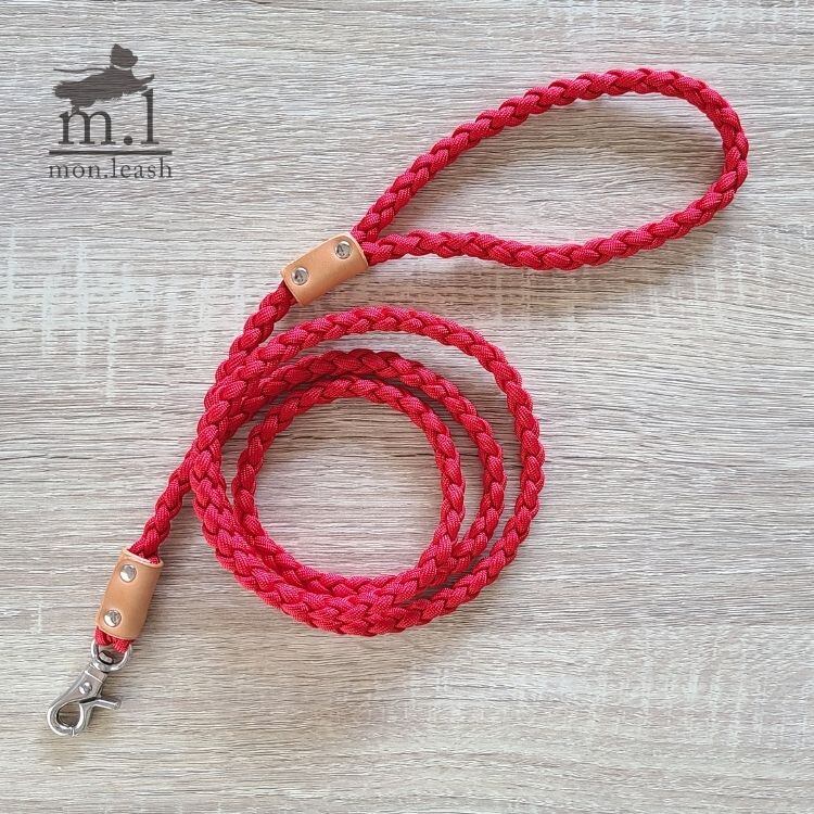お散歩リード 120cm パラコード リード 犬 引き紐 / ベージュ革 レッド