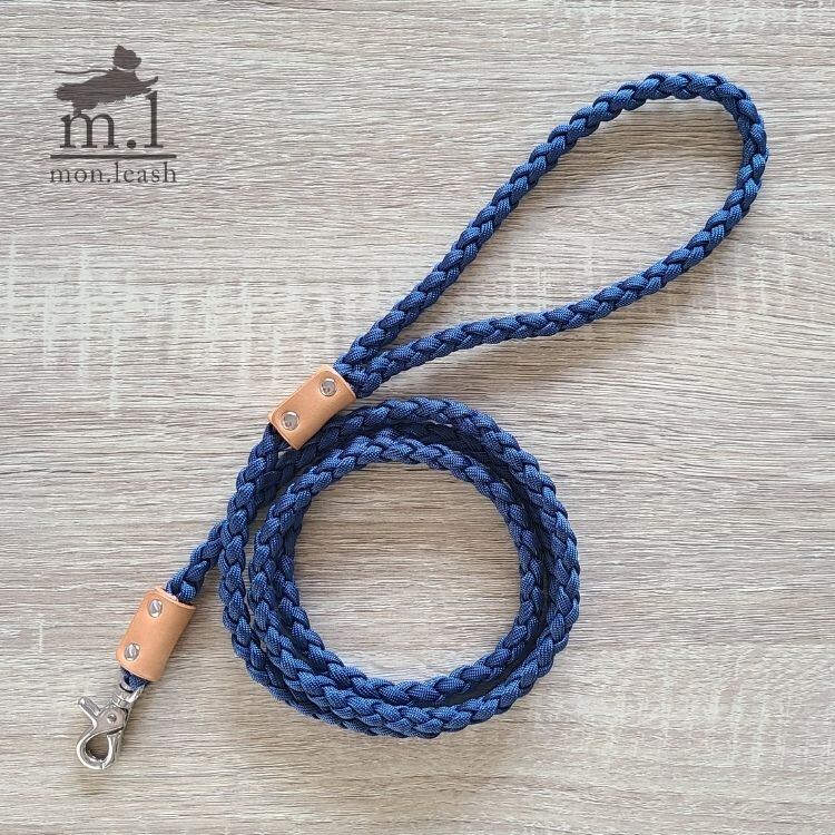 お散歩リード 120cm パラコード リード 犬 引き紐 / ベージュ革 ネイビー