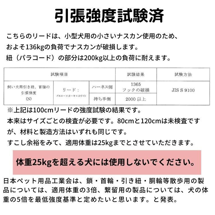 ※こちらのリードは、上記の適用体重を超える犬にはご使用いただけません。