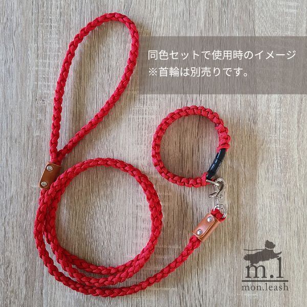 お散歩リード 120cm パラコード リード 犬 引き紐 / キャメル革 レッド