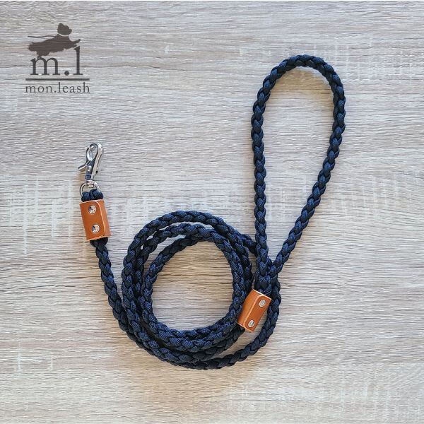 お散歩リード 120cm パラコード リード 犬 引き紐 / キャメル革 ブラック