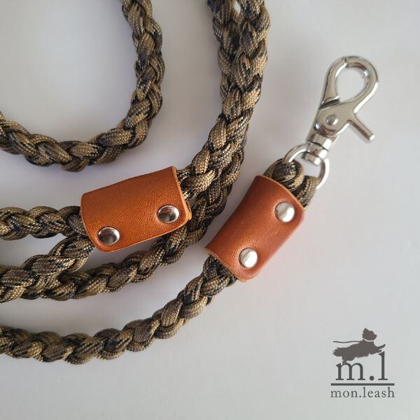 お散歩リード 120cm パラコード リード 犬 引き紐 / キャメル革 カモフラ